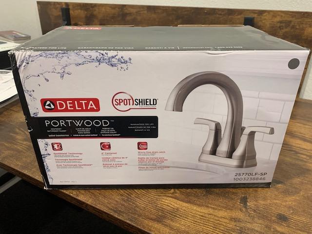 Delta Portwood nickel finish 4 in centerset faucet, $20