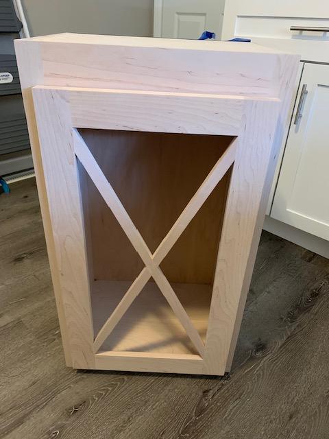 Unfinished maple cabinet, made for glass front (glass not installed but is included).