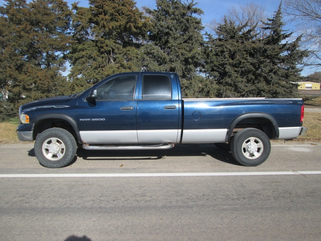 2004 Dodge 2500; 5.7 hemi and 5 speed manual transmission. Truck runs and drives nice for the age, steering and front end is tight, no dodge wander here. Engines quiet, trans shifts well, 4wd works great. Pretty clean truck for the age. Radio sometimes has a mind of its own and the outside temp reading is way off. Otherwise, everything works well on it. Does have a goose neck ball as well. Nice running driving old dodge, ready to work. Give me a call at 308-380-5641.