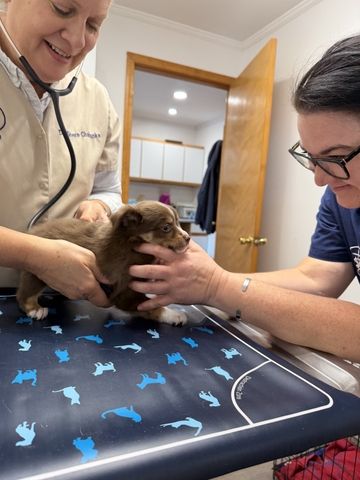 She’s had her tail docked, dew claws removed, first wormer, and her 6-week shots plus a wellness check. She’ll get another round of wormer before she leaves.