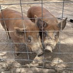 Two head of one yr old breeding boars. Half blood Red Wattle/Berkshire. $600/hd