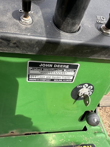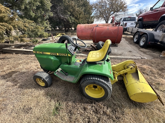 For sale 214 John Deere mower. Comes with mower deck, front blade, bagger, and rotor-tiller. Two bags, new belts, extra belts, 2 new front tires and tubes, new spring assist to help lift the tiller and factory John Deere cover. Recently serviced.We do not need help selling and no trades. Call or text Chris at 620-285-5069. $3250.00