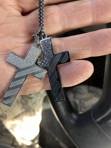 Two Crosses on a chain. Tell me where lost and inscriptions on the back to arrange return.