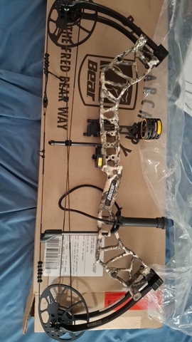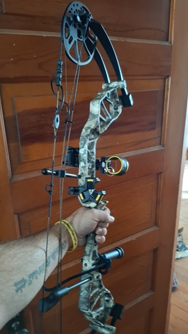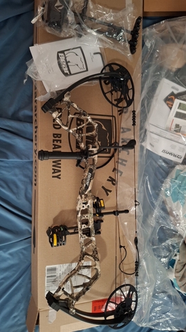 Brand new, took out of box for pictures. It's left handed, only reason selling it. Son bought it and didn't realize it was a left handed bow. Paid $375