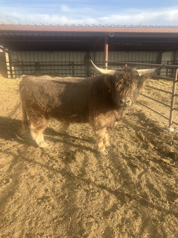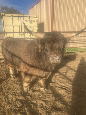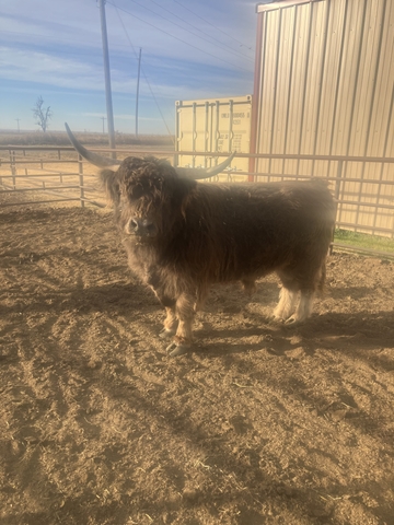 Really cool highland bull. Will eat cake out of your hand. Has awesome babies. Call or text 719-6eight 8 0 seven 00.