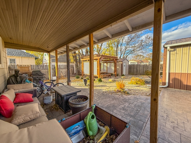 Outside, the backyard becomes your own private oasis. Enjoy a covered patio, stone landscaping, and a charming pergola, all designed for low-maintenance relaxation - no mowing required. A handy storage shed adds even more convenience.
