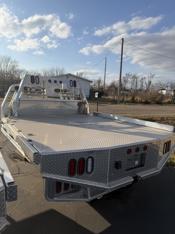 96" wide 114" long 34" frame width will fit Ram and Ford Cab and Chassis DRW models with 60" cab to axle