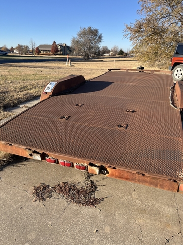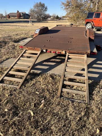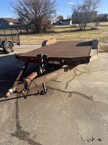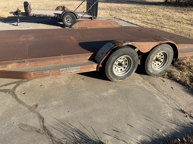 This is a nice pulling car hauler made by road clipper ,charger custom series .It is 18 ft 5 inches long by 7 ft wide . Good diamond steel decking /no wood to rot out or break thru.It has flip up recessed anchor rings in deck also.Has a reciever in front of deck to mount a winch if needed. Slide in and out ramps. Lights and brakes double axle. Call 6205463734