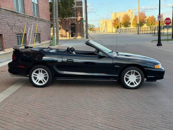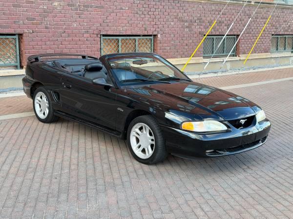 For sale is a 1996 Mustang GT Convertible. This is a clean title vehicle that shows zero accidents or damage via Carfax and only 66k miles! It is freshly polished and looks amazing in its triple black color scheme! This Mustang is in excellent condition inside and out and runs and drives perfectly. We also just had brand new premium tires installed. The top is power and works perfectly as well. It is loaded with options like premium alloy wheels, factory rear spoiler, premium MACH audio, fog lights, power leather seating, and a host of other great standard and optional features. It is powered by a 4.6-liter V-8 engine putting out 215hp and 285lb-ft driving the rear wheels via a 4sp automatic transmission. This Mustang is a ton of bang for the buck and very hard to find in this condition and such low mileage. Stop by and check it out for yourself. Thanks for looking!