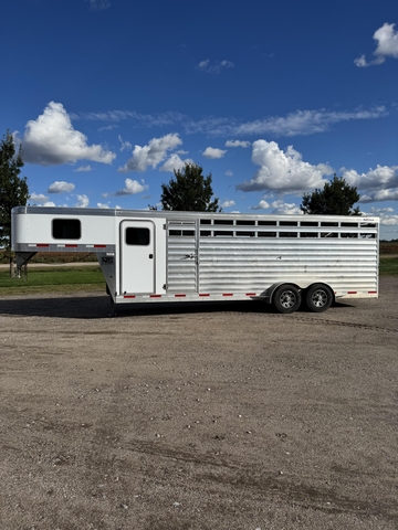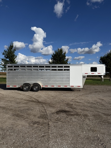 24' stock/combo with 4' front tack, 20' stock area, haul 5-6 horses, one cut gate, has heavy duty radial tires, have winter plexiglass slats, really nice trailer, $25,000, 620-546-five two five five