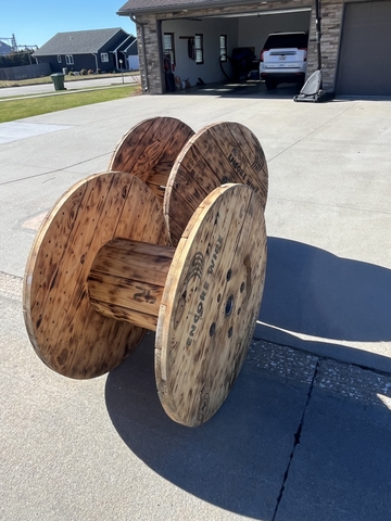 2 medium round wood spools that are burned look effect excellent shape used for graduation and weddings arrangements $400 or $250 for one
