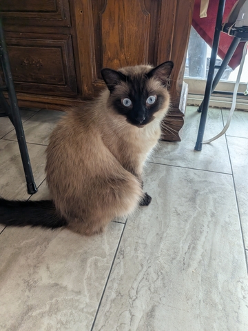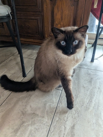 Hi I'm Willis, Willard, Willie whichever you prefer to call me. I'm a big beautiful 6 year old long haired male Siamese. I am fixed and also have no front claws. I am an indoor cat but venture outside in a fenced in area from time to time when it's nice. I love my snacks and cuddles. I get along with dogs and cats just need time to get used to them. I need a new purrrever home since my owners daughter is allergic to me.