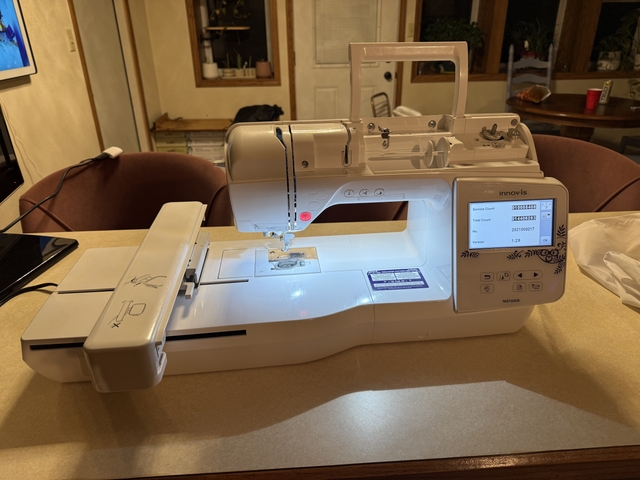 Brother NQ1600E embroidery machine. Included is an 8x10 magnetic hoop and an 8x10 hoop, a small hoop. There is another 8x10 with a crack you can have if you want it. Pictures show stitch count. Wonderful machine I just don’t have time to use it anymore.