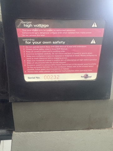 Nova DVR 3000 lathe with bed extension and stand. Set of knives included
