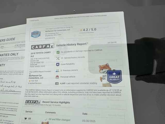 2018 TOYOTA CAMRY XLE