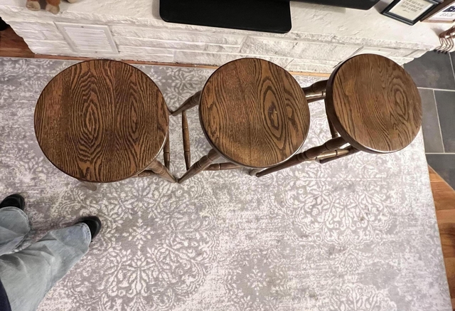 Wooden bar stools for sale. Stand 24" inches high and seats are 13 3/4" diameter. Would like to sell as set.