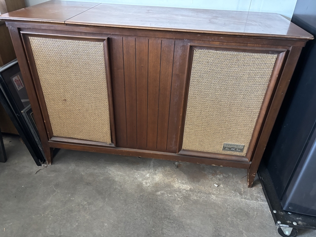 Zenith console stereo in good working condition. Record player works as well comes with extra needles. The entire stereo was in very good condition.