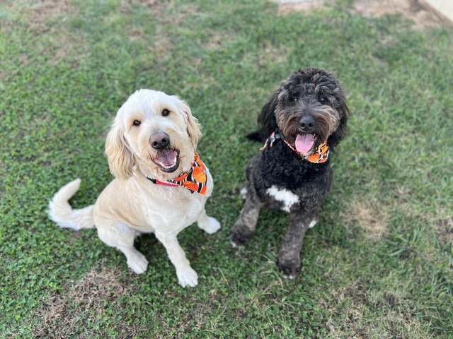 Mom is a 60lb F1 Bernedoodle, and dad is a 65lb F1 Goldendoodle.
