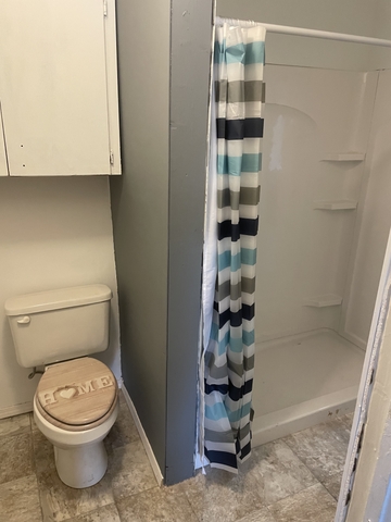 Newly remodeled bathroom with modern touches and offset vanity