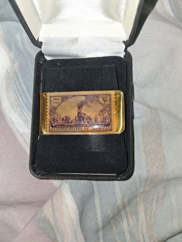 1869-1944 authentic railroad stamp money clip with certificate of authentication on the stamp. 75