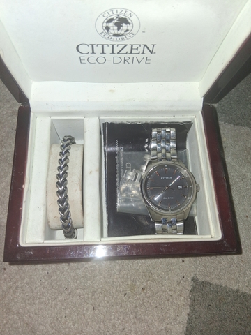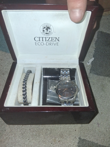 Citizen echo drive watch early worn comes in original case. Case does have some wear and tear. Also comes with a silver bracelet 175.00
