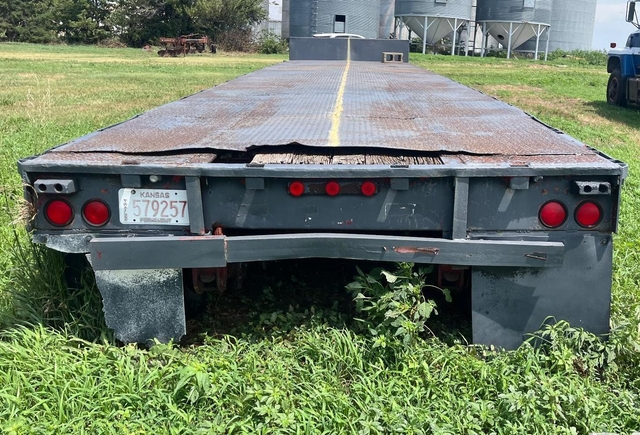 For Sale: 1990 Trailmobile T/A Steel Drop Deck Trailer, 48' Total Length, 37' Lower Deck, 11' Upper Deck, Side Stake Pockets, Air Brakes, Leaf Spring Suspension, 102" Total Width, 255/70R22.5 Tires. No rust nice older trailer with good tires and a clean Kansas Title