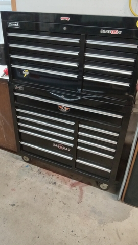 Homak SE Series combo 19 drawer with top lid tool box. 41 x 18 x 60" tall. Good condition. 785 259 4669.