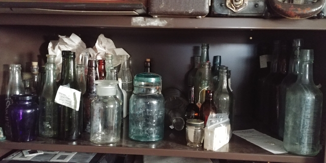 A dark green Victorian bottle that looks black with three part mold and applied top.
