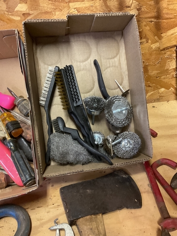 box of hand and rotary brushes. $10. Call 785-222 6549