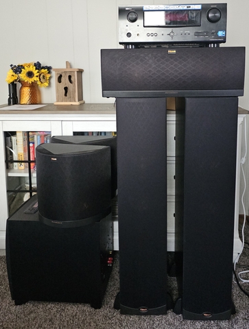 Comes with pre-cut speaker cables with banana plugs, subwoofer cable, and Audyssey calibration microphone.