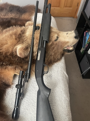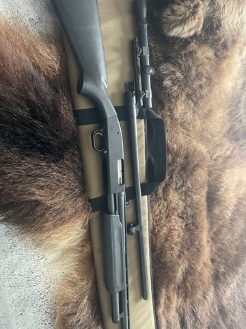 Mossberg Maverick 88 20 gauge with vent rib barrel as well as fully rifled, ported slug barrel with cantilever scope base. Call or text (785) two two 6 three 22 one.