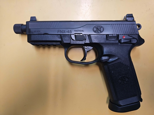A .45 ACP, bought new three years ago, fired, by actual count, 1,100 rounds. Complete as new, plus a third 15-round magazine, with carrying case, manual, conversion kit for optical sights, lock and keys, four backstraps in two sizes. $1,000 OBO.