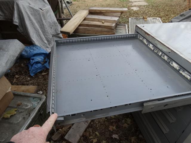 Vidmar is the Cadillac of storage cabinets. Drawers run on ball bearings and are each rated for 400 pounds of load. Ball bearings were recently cleaned with carburator cleaner and relubed with silicone spray.