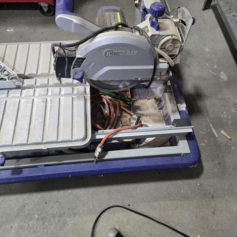 Kobolt sliding table wet saw with stand. Asking $150.00 cash. text 785 452 one zero three two