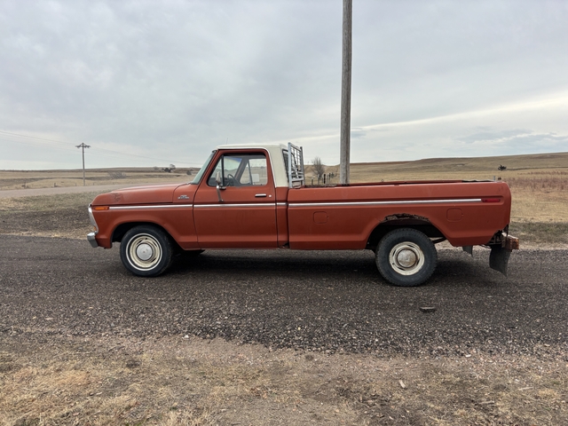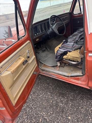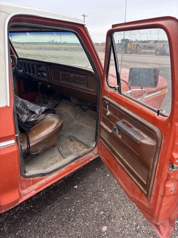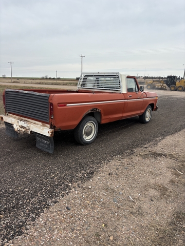 78 f-150 351m new timing chain, plugs, valve cover gaskets. C6 Runs, drives, stops. Brake pedal is firm. Non a/c cab Box sides are rusty, one cab corner. Not a bad old pickup, dome light and horn still works. Windshield is broken. Hood has been repainted but other than that a fairly original ride. 2,000 obo
