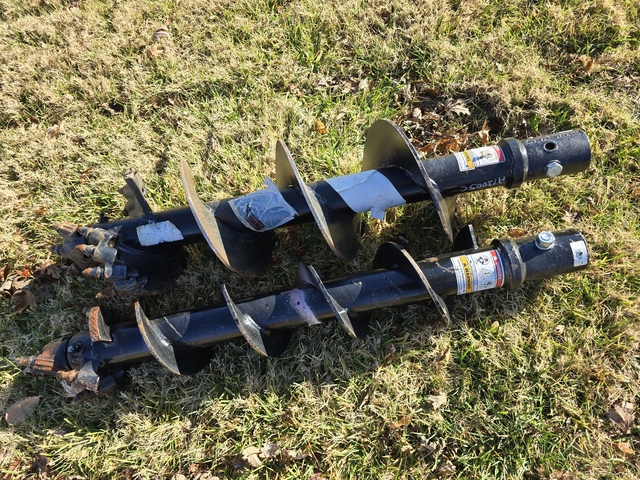 Bobcat 20PH Auger assembly - includes 8" and 12" rock cutting bits. The rock cutting bits are high dollar, and are much stronger than standard auger bits. These can easily dig through rocky soil conditions. The auger is under warranty til 5/2027