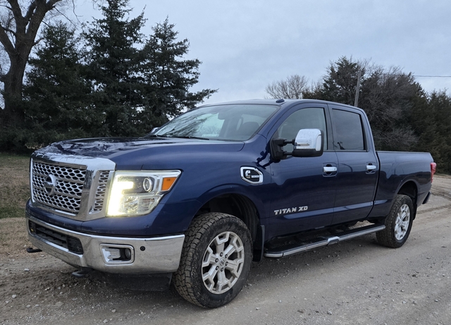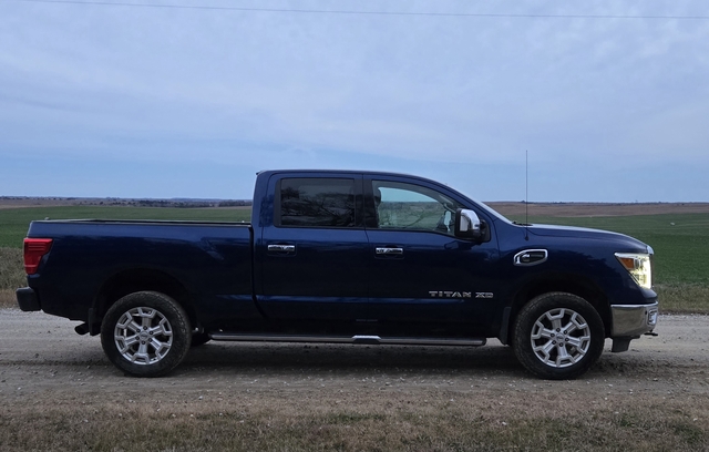 We have our Nissan XD Titan with Cummins for sale. Great running truck, smooth and comfortable ride, and in excellent condition inside and out. Has the 5.0L Cummins motor with only 110,000 miles, DEF has been deleted, leather, back up camera, motion sensors, and a factory gooseneck ball in bed. 2WD. Always shedded and well maintained.