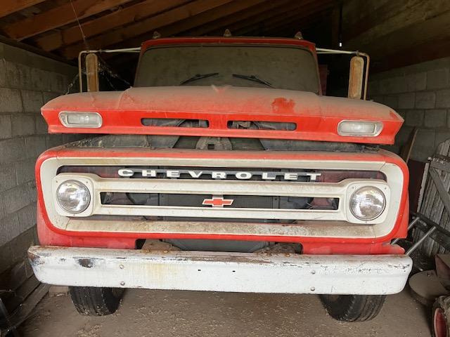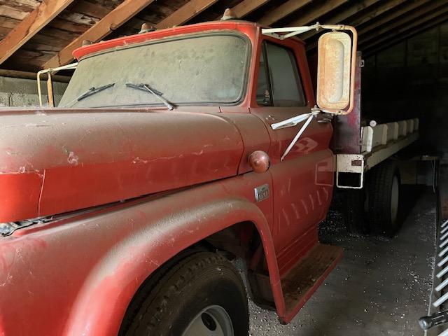 updated tires and rims, 290 CI 6 CYL 4 speed 2 speed axle; 13.5' box and hoist with grain sides