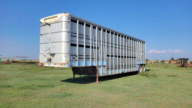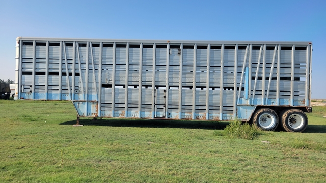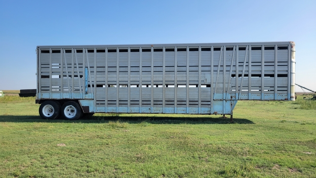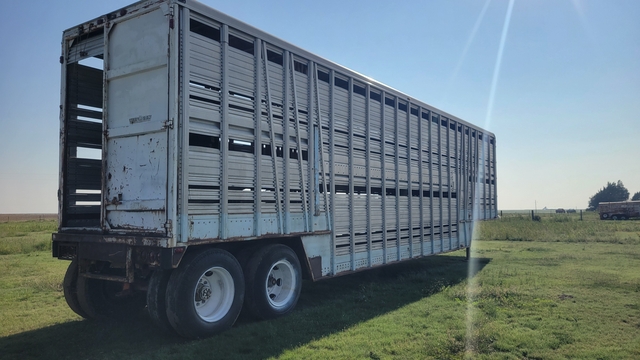 Semi Livestock Trailer--1970 Wilson, 44’ Length, 96” Width, 13.5' Height, Air Suspension, 4 Air Bags, Fixed Axle, Air Brakes, Duals, Steel Wheels, 5th Wheel Hitch, Two Decks, Aluminum Floor, 10.00-22 Front Tires, 11-24.5 Rear Tires, Roll Up Overhead End Gate, Slider Ramps For Compartments, Rear Hitch To Pull Loading Chute, $8000---Brent Cook Retirement--(785) 82One-1One32--Click on "Timer" to see my other listings.