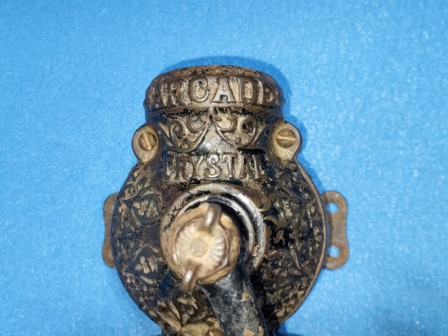 This is an Antique Arcade Crystal No.3 Wall Mount Coffee Grinder with Handle-18” Tall. With its classic BLACK color and original design, this COFFEE GRINDER is a durable and stylish addition to any collection.