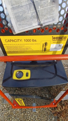 For sale is a new Wesco brand electric lift fork stacker, P/N #261032. Rated at 1,000 lbs. lift capacity and runs on 12-volt battery power with built-in battery charger. These are priced at $3,700 and up from various retailers. A very handy tool to safely move heavy items around in a shop. Give me a call or text @ 785-630-zero zero79 if you have some interest in it. Located in Clifton, KS.