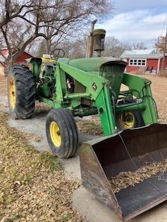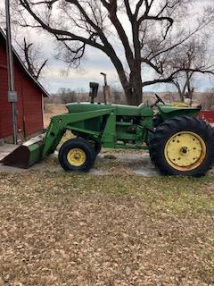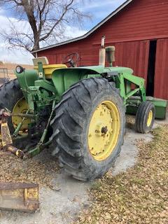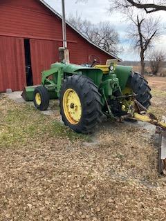 4020 JD with JD 142 loader and power shift, 1966, serial #138570, HR meter shows 4710 Runs great. 3pt blade and field fuel tank included.