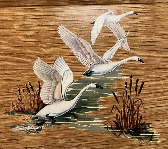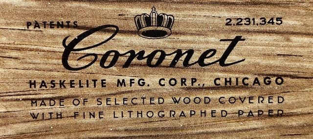States: "Coronet Haskelite Mfg., Chicago. Made of selected wood covered with fine lithographed paper."
