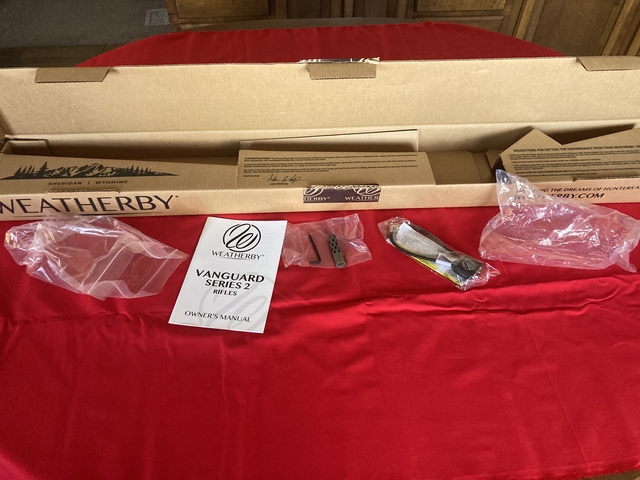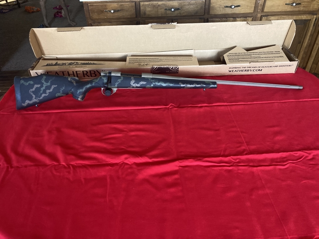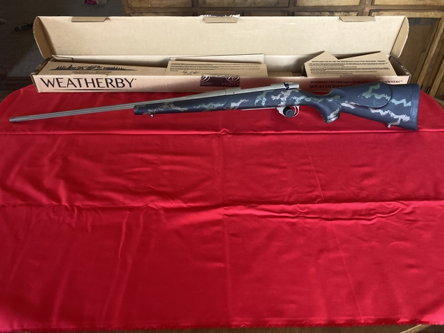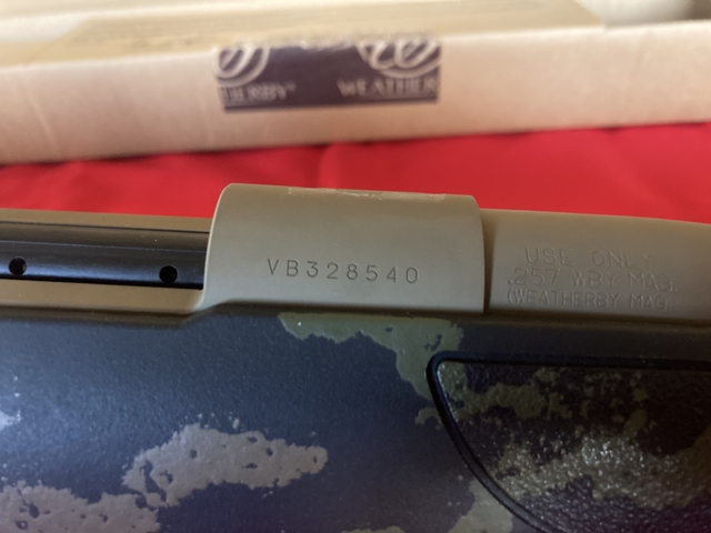 Weatherby Vanguard High Country chambered in 257 Weatherby magnum. 26" fluted barrel, hinged floor plate. As new condition, fired only 5 times. Comes with 20 rounds of Weatherby select plus 100 grain TTSX bullets, 15 rounds of Weatherby select loaded with Hornady 100 grain interlock bullets and the 5 fired cases.