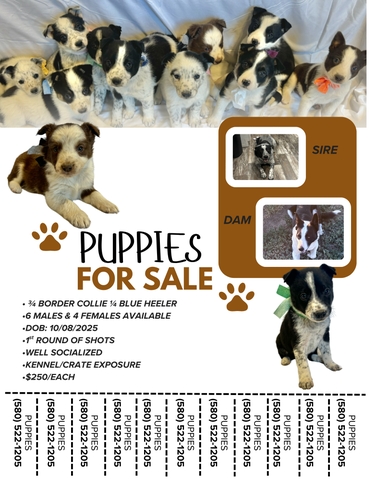 3/4 BORDER COLLIE 1/4 BLUE HEELER--6 MALES & 4 FEMALES AVAILABLE!! See the pictures for my info or give us a call!