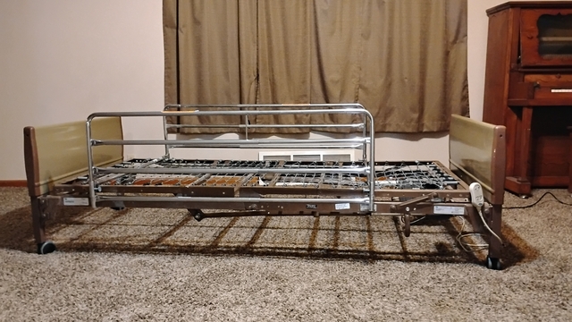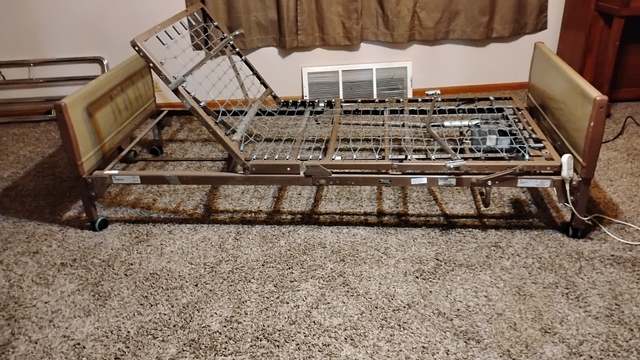 Invacare electric home hospital bed. Used in good condition. All functions work. Includes bedrails.
