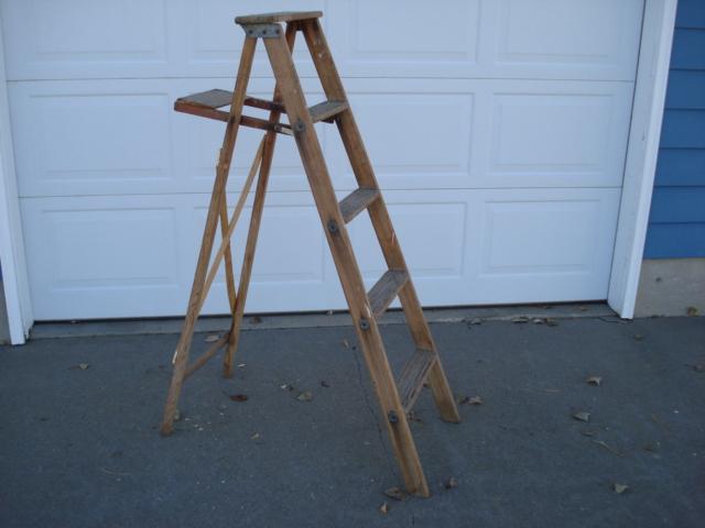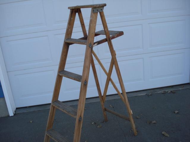 FOR SALE GOOD WOODEN STEP LADDER 4FT 8IN TALL PLEASE CALL 785 625 3183 OR MESSAGE HERE
