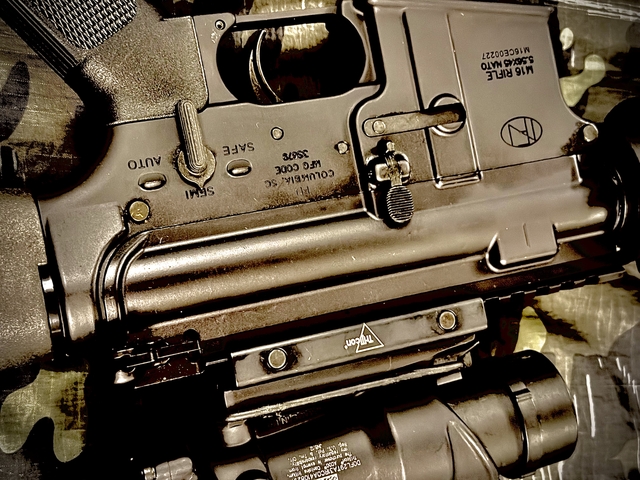 FN manufactured these M16 CIVILIAN LEGAL rifles with modified lowers so they cannot shoot fully automatic or "select-fire". They are semi-automatic rifles = civilian legal. These are 100% military specification rifles and have parts interchangeability with the issue M16 rifle and will pass any/all milspec inspection EXCEPT the lower has been manufactured so it will not not not shoot fully automatic. The select switch does have "SAFE", "SEMI", AND "AUTO" but will not move into the "AUTO" position. These military issue rifles have the period correct KAC Knight's Armament Company M5 RAS Adapter rail with rail adapter covers and the KAC adjustable rear iron sight and the Knight's forward grip along with the proper UID label.