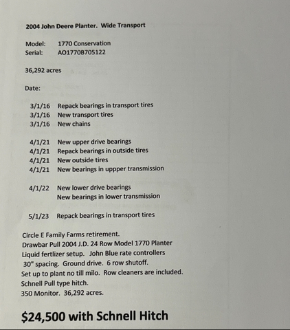 Drawbar Pull 20045 J.D. 24 Row Model 1770 Planter. Max Emerge Plus