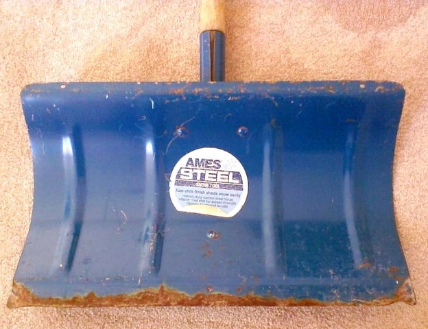 5 foot Snow Pusher Shovel $15 - 18” heavy duty carbon steel blade with reinforced ribs for added strength. Much more durable than those plastic shovels that break easy. Non-stick finish sheds snow easily. Strong hardwood handle.